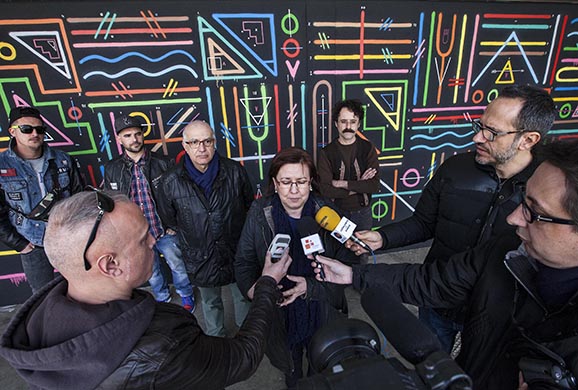 Mural Tàrrega Published 23 febrer, 2015 at 578 × 390 in Tàrrega protegirà i farà visitables els seus grafits ← Anteriors Següent → Presentació del mural. X.S.